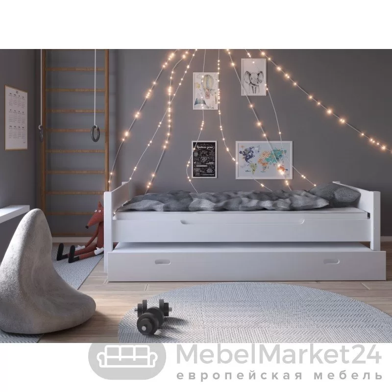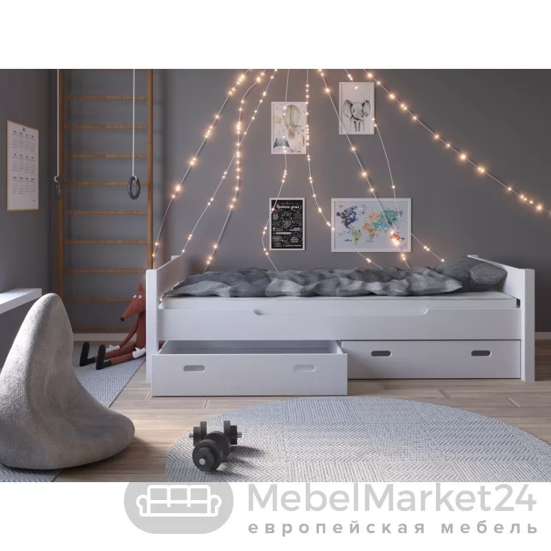 Это простая и удобная конструкция для детской комнаты. Выполнена в классическом стиле, где нет ничего лишнего: прочная конструкция. Поставляется в разобранном виде. Дополнительно комплектуется ящиками и настилом под матрас. Размер спального места 90х200.