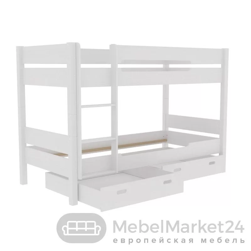 Кровать подростковая массив сосны Амелия 2-х ярусная 1640 с ящиками (серый)