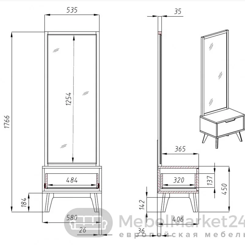 Тумба с зеркалом SKANDI