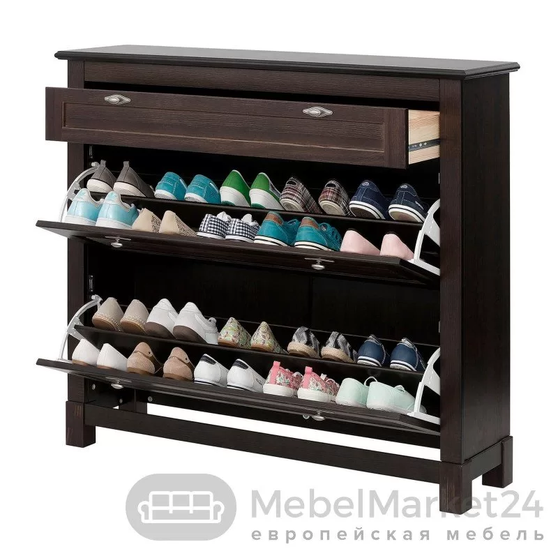 Высокая тумба для обуви “Рауна 21” сохранит в порядке весь ваш обувной гардероб. Она состоит из двух вместительных отделений, над которыми находится выдвижной ящик для мелочей. Подойдет как для прихожей в городской квартире, так и для загородного дома.