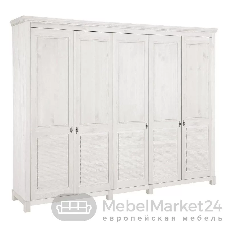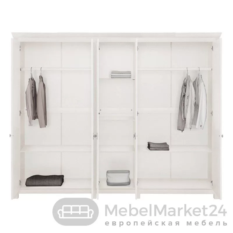 Этот шкаф из коллекции “Рауна” отлично подходит для небольших пространств, используя его максимально эффективно и визуально увеличивая. За пятью распашными дверями находятся два отделения для одежды со штангами и шесть полок для других вещей, включая головные уборы и обувь. Такое изделие удачно впишется в любой современный интерьер.