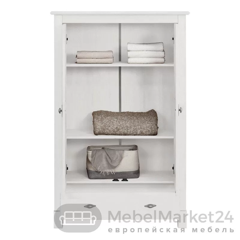 Шкаф имеет за дверями 3 полки и выдвижной вместительный ящик.