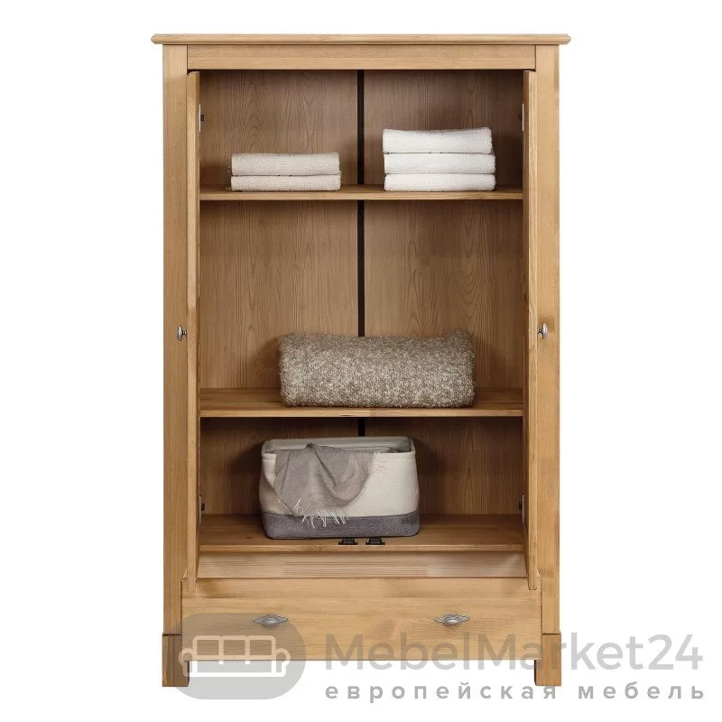Шкаф имеет за дверями 3 полки и выдвижной вместительный ящик.
