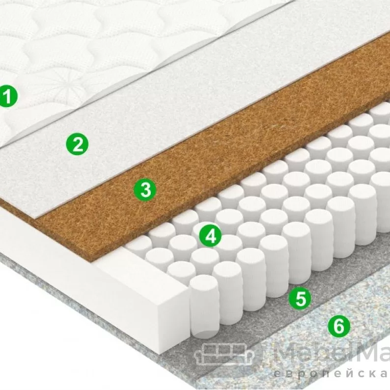 5. Термоволокно - Защитная прослойка из термопресcованного волокна. Разделяет пружинный блок и мягкие наполнители.